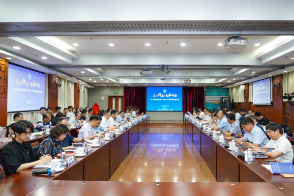 江苏省文化和旅游厅党组成员、副厅长兼省文物局局长、南京博物院党委书记拾峰,长江文化促进会副会长、中国长江三峡集团有限公司一级咨询田泽新,工信部人教司教育处一级调研员郑天翔,江苏省委宣传部文化产业处、国家文化公园协调指导处处长楚昆,江苏省教育厅社会科学研究与思想政治教育处、宣传处副处长冯帅,新华社江苏分社副总编辑凌军辉,重庆中国三峡博物馆研究部主任艾智科,青海省博物馆党委书记、馆长兼省文物考古研究院院长王进先,南京博物院副院长王奇志,南京大学博物馆副馆长赵东升,四川省文物考古研究院副院长刘志岩,南京市博物馆副馆长岳涌,长江文化促进会研究发展部主任魏子忠,长江文化促进会对外联络部副主任宋涛,校党委书记甄良,副校长施大宁,校党委副书记陶勇,校党委常委、宣传部部长、教师工作部部长王晖,校长助理、党政办公室主任张启钱,校文化建设特聘顾问、著名考古学家车广锦出席会议。座谈会由陶勇主持。