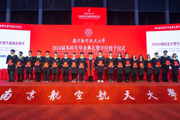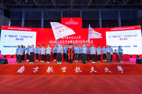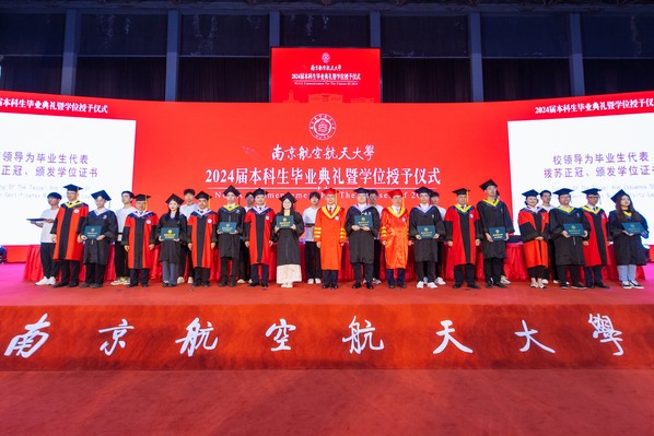 6月21日下午,2024届本科生毕业典礼暨学位授予仪式在将军路校区体育馆举行。全体校领导、党委常委、校长助理,2004届校友、中国飞机强度研究所总工程师、副所长刘小川,相关部处负责人、各学院领导、教师代表、家长代表出席典礼。