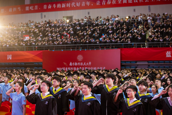 全体毕业生集体宣誓,立志在未来的岗位上,改革创新、奋发作为、追求卓越,不负母校、不负使命、不负祖国!