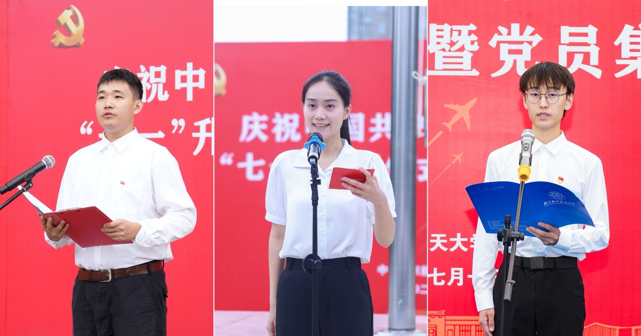 机电学院研究生张贻淼、电子信息工程学院、集成电路学院本科生柴玮、民航学院本科生孙淑琪作为新发展学生党员代表分别发言,结合个人成长经历,分享了入党以来的心路历程,表示党员不仅仅是一个身份,更是一份沉甸甸的责任,将在学思践悟中坚定理想信念,在奋发有为中践行初心使命,为全面建设社会主义现代化国家、全面推进中华民族伟大复兴贡献青春力量。