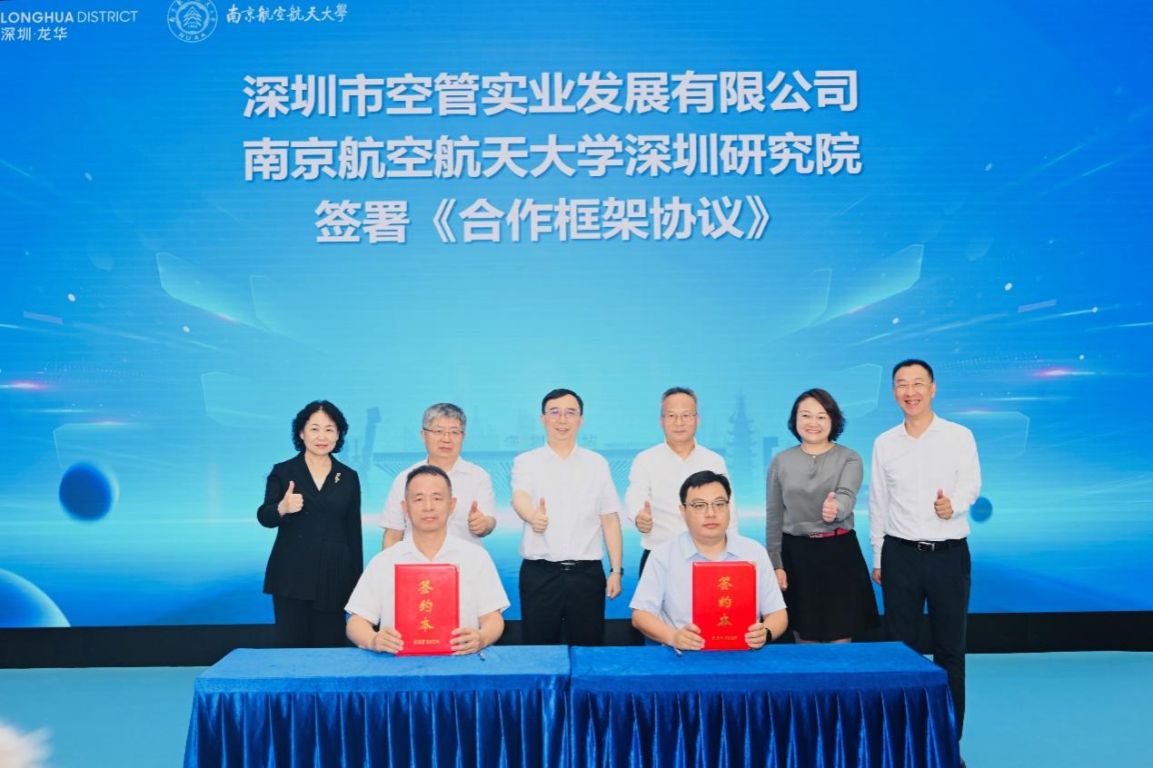 在姜斌、汪洪蛟、胡斌、李遥、王晖、范文梅见证下,ac米兰深圳研究院执行副院长吴庆春与空管站深圳市空管实业发展有限公司党总支书记刘铁军签署了《合作框架协议》,双方围绕低空领域,就人才培养、科研合作、产业转化等方面达成合作意愿,进一步支持ac米兰深圳研究院做实做强。