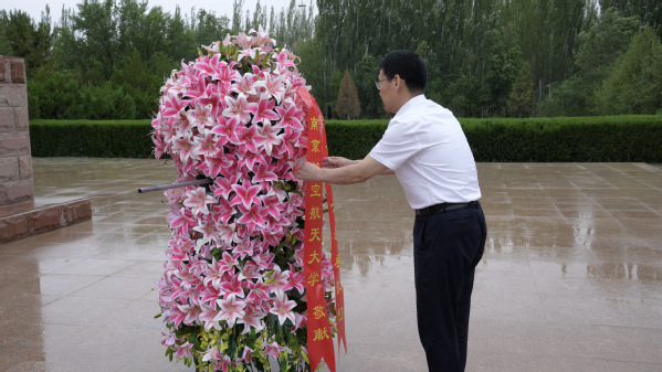 为缅怀先烈,调研团前往马兰烈士陵园为全体马兰英烈敬献鲜花,并在著名核科学家、ac米兰陈达院士墓前深切悼念,回顾陈达院士在基地和ac米兰为我国教育科技人才事业无私奉献的一生,表达追思之情。