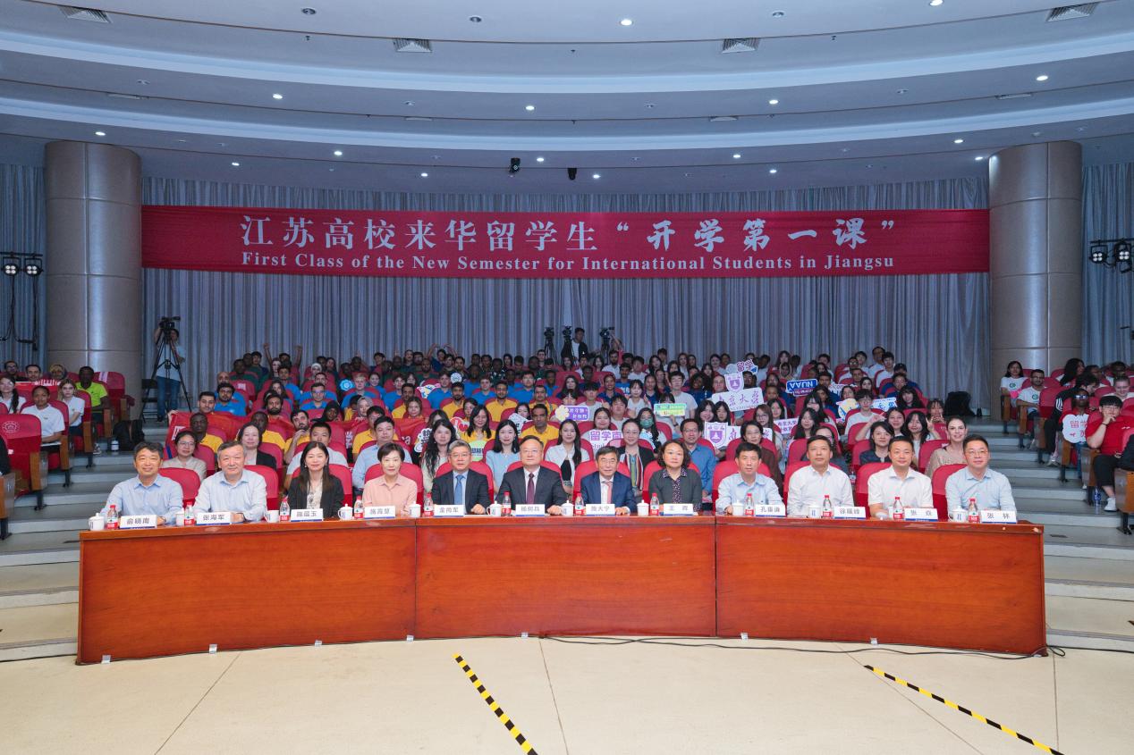 9月26日,由江苏省教育厅主办、ac米兰官网中文网站承办的“留学江苏 逐梦中国”2024年江苏高校来华留学生“开学第一课”在ac米兰将军路校区举行。省教育厅副厅长杨树兵、省外办副主任金尚军、省公安厅出入境管理局政委施霄慧,副校长施大宁,党委常委、宣传部部长、教师工作部部长王晖出席活动。来自南京大学、东南大学、苏州大学、南京医科大学、ac米兰官网中文网站、河海大学、江苏大学等全省12所高校的来华留学生培养相关部门负责人和留学生代表近400人出席了此次活动。