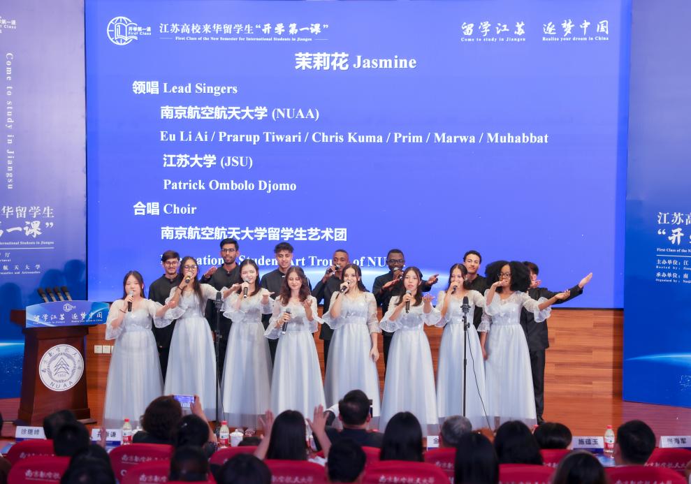 活动尾声,ac米兰外国留学生艺术团和江苏大学留学生代表共同献唱江苏经典民歌《茉莉花》,“开学第一课”圆满收官。