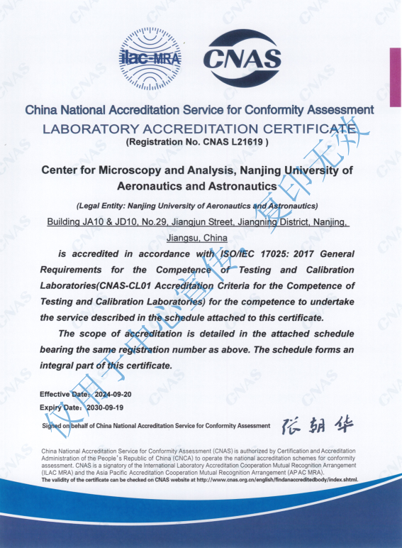 分析测试中心将以此次取得CMA和CNAS资质认证证书为开启新篇章的契机,持续加强质量管理,全力提升检验检测能力,致力于为用户提供更加公正、准确、可靠的检验数据和分析测试服务。与此同时,中心还将积极拓展服务渠道,主动参与行业合作与交流,不断提升自身综合实力和影响力,为学校“双一流”建设、人才引育、科技创新和服务地方高质量发展提供强力支撑!
