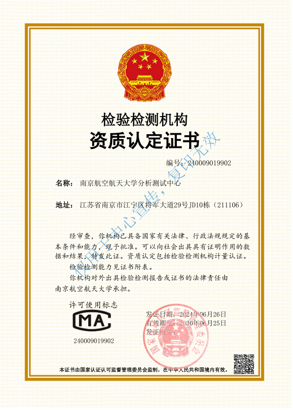 6月26日,国家认证认可监督管理委员会正式向ac米兰分析测试中心颁发了检验检测机构资质认定(CMA)证书,这标志着中心在微区形貌/结构、微区成分、晶体结构与晶型、光电子能谱分析、微区结构分析、室温拉伸试验6个项目上,已经完全具备了国家有关法律、行政法规规定的基本条件和能力,可以向社会出具具有证明作用的数据和结果。