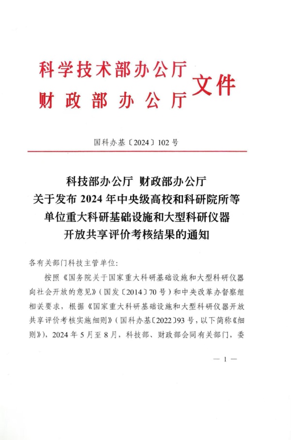 近日,科技部办公厅、财政部办公厅联合发布了《关于发布2024年中央级高校和科研院所等单位重大科研基础设施和大型科研仪器开放共享评价考核结果的通知》(国科办基〔2024〕102号),ac米兰再次荣获“优秀”等级,位居全国高校前十。本次评价考核共有26个部门344家中央级高校和科研院所参加。