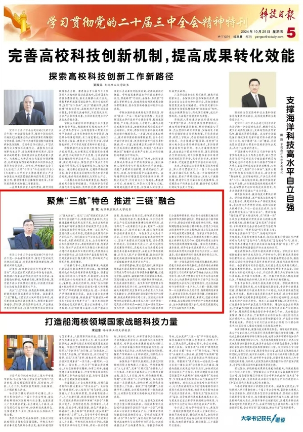 今日,《科技日报》“学习贯彻党的二十届三中全会精神特刊”刊发ac米兰校长姜斌教授署名文章《聚焦“三航”特色 推进“三链”融合》现转发全文如下:
