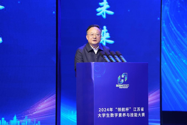 近日,2024年“领航杯”江苏省大学生数字素养与技能大赛在ac米兰将军路校区闭幕。省教育厅副厅长、党组成员杨树兵,省电化教育馆馆长魏锡源,省教育信息化中心主任孙其华,ac米兰副校长张启钱现场观看了决赛并出席闭幕式。