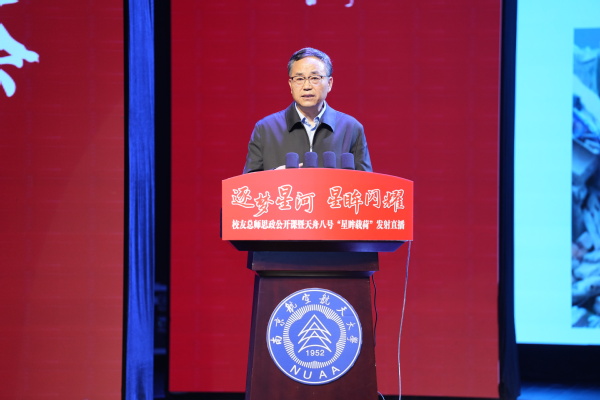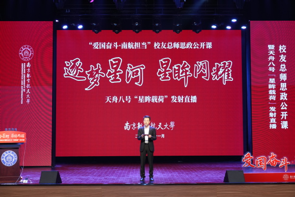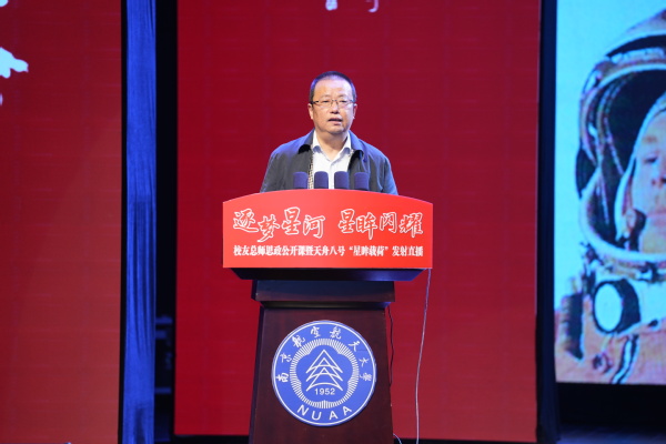 校长姜斌,党委常委、宣传部/教师工作部部长王晖,龙芯中科(南京)技术有限公司教育总监张双,党的十九大、二十大代表,国家重大人才工程青年学者,能源与动力学院党委书记徐川,发展联络部部长李和新,研工部部长宋凯,学工部部长王静,将军路校区管委会党工委书记邬沛雄,电子信息工程学院党委书记季海群,航天学院党委书记孙占久,航空学院副院长陆洋出席活动。千余名师生现场聆听总师校友授课并集体观看天舟八号“星眸载荷”发射直播。活动由王晖主持,校友总师思政公开课由徐川主持。