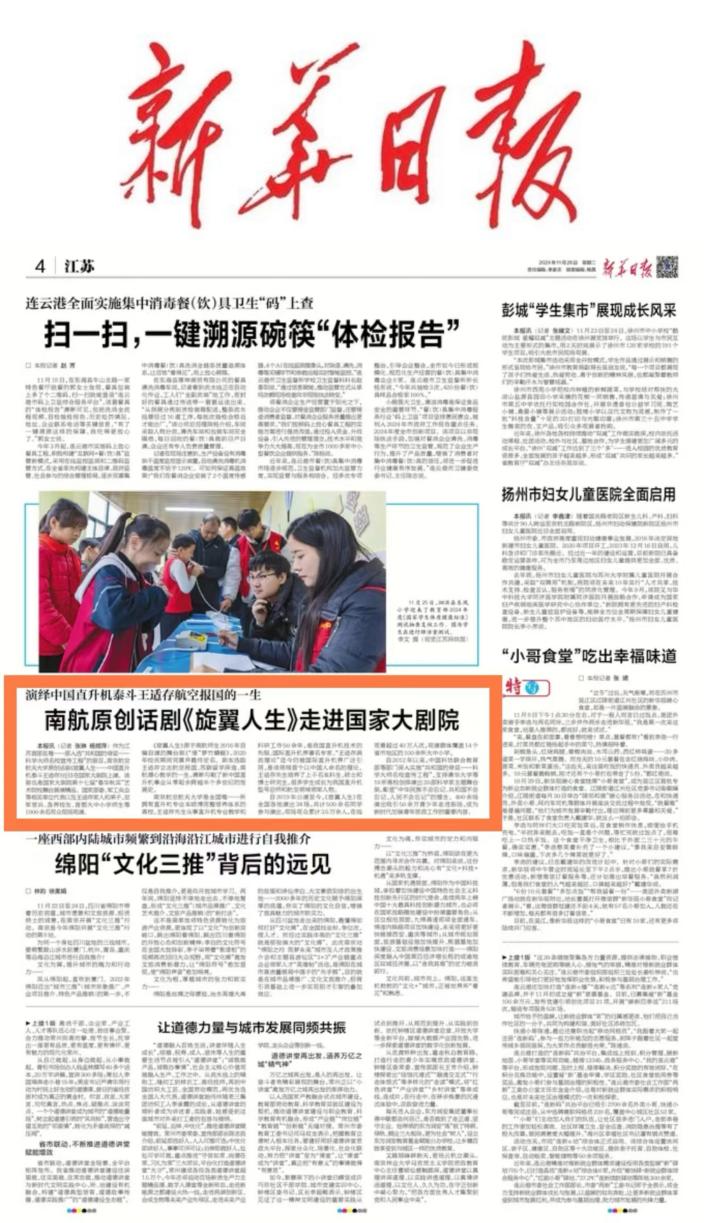 CHINA DAILY:University play celebrates life of helicopter pioneer Wang Shicun