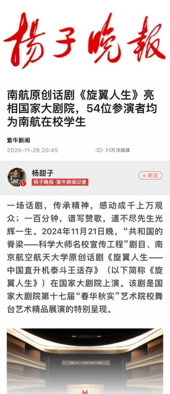 扬子晚报:ac米兰原创话剧《旋翼人生》亮相国家大剧院,54位参演者均为ac米兰在校学生