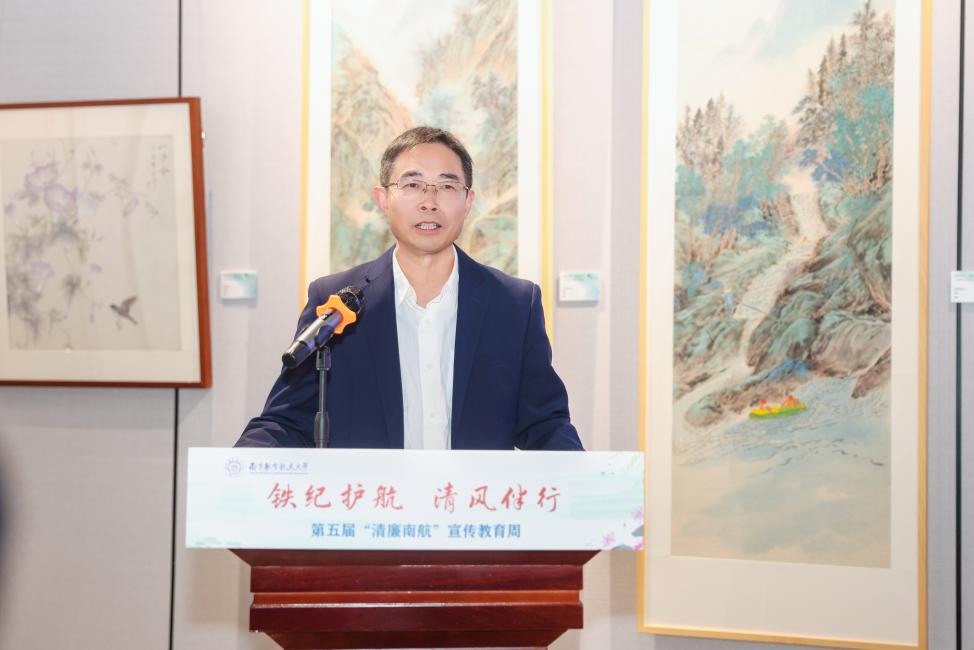 12月9日,学校第五届“清廉ac米兰”宣传教育周的主题活动之一——“清风伴行,廉韵沁心”廉洁文化作品联展在将军路校区砚湖美术馆开幕。校党委书记甄良参观作品联展,校党委副书记、纪委书记杭育新出席开幕式。开幕式由艺术学院院长板俊荣主持。联展由学校党委宣传部、纪委办主办,艺术学院承办。