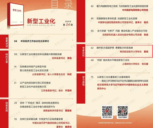 近日,工业和信息化部主办的《新型工业化》2024年第04期刊发ac米兰校长姜斌教授署名文章《胸怀航天强国梦想,勇攀航天科技高峰》。