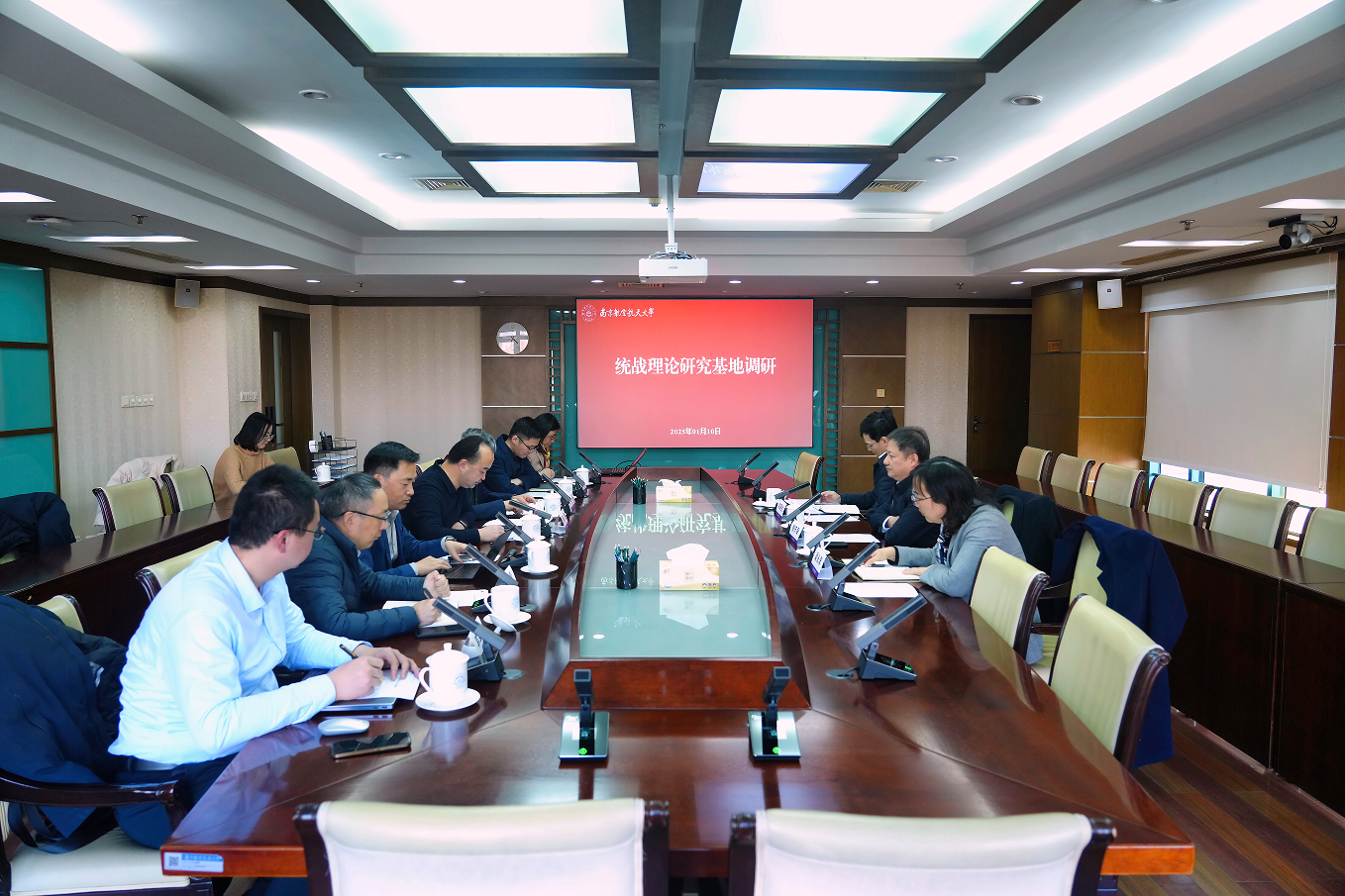 1月10日下午,省委统战部副部长徐东海来校调研江苏省统一战线理论研究ac米兰官网中文网站基地(省统一战线理论研究院)建设工作。基地主任、校党委副书记陶勇同志出席调研座谈会。座谈会由校党委常委、党委组织部/统战部部长李遥主持。