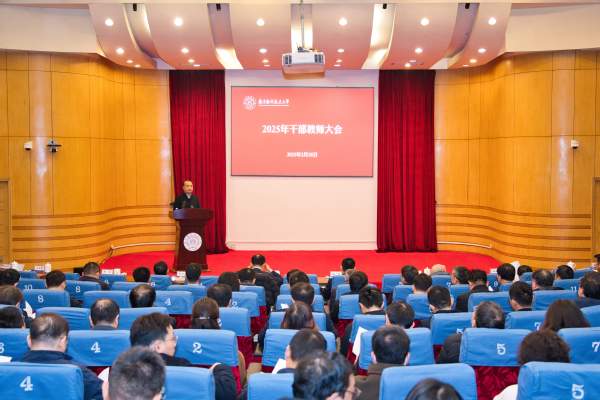 学校党委委员、纪委委员,高层次人才代表、学科带头人代表,各级人大代表、政协委员、政府参事,各民主党派、统战团体主要负责人,全体中层正职领导人员,机关和直属单位中层副职领导人员现场参加了会议。学院副职领导人员、各学院二级岗教授、系主任、教职工党支部书记,全体科级干部在分会场参加了会议。