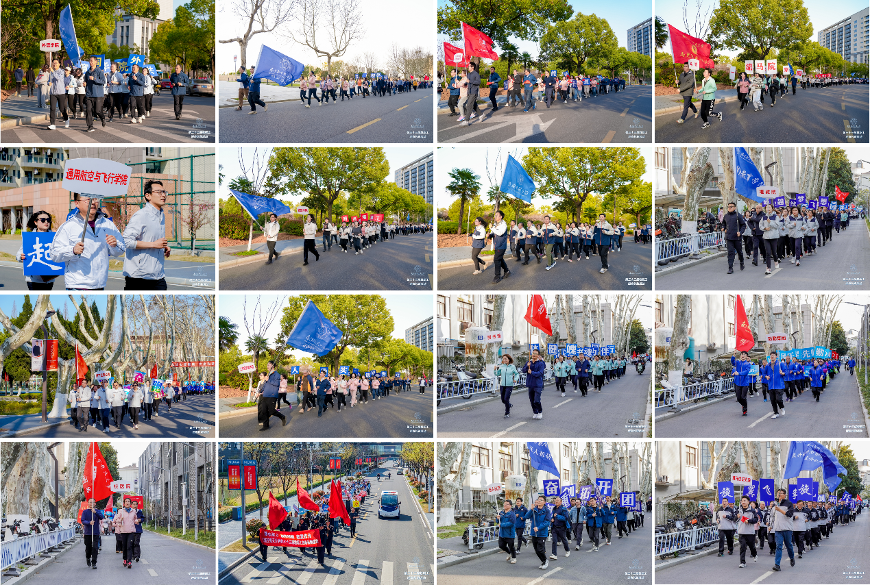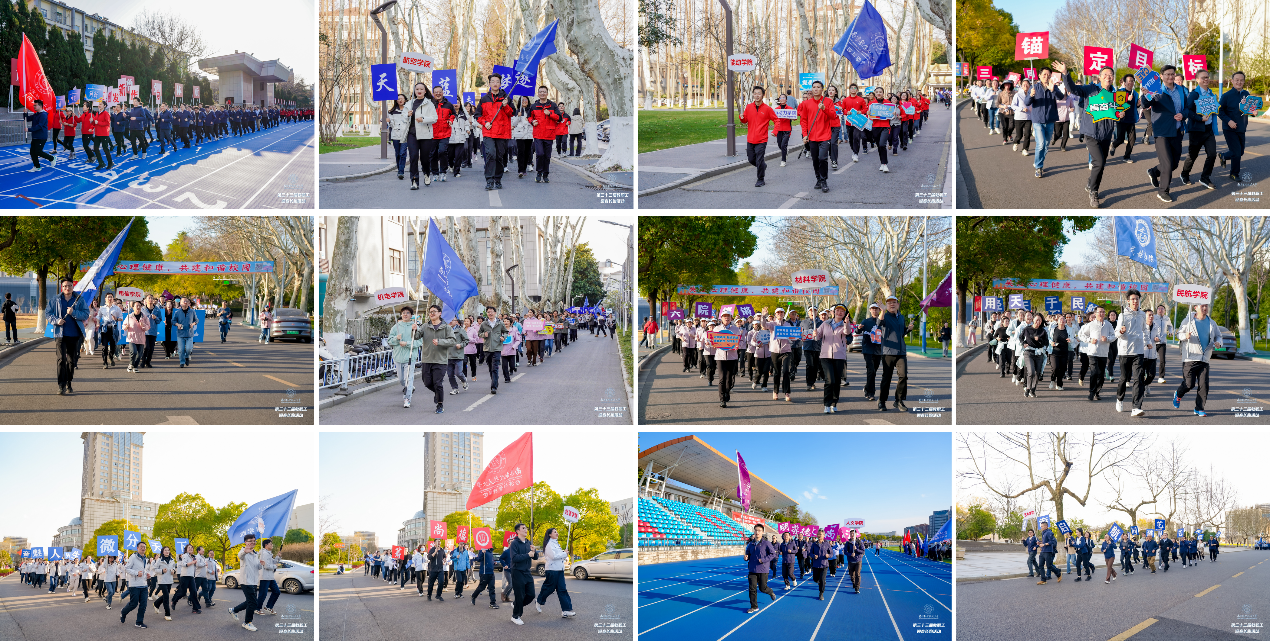 下午,随着校党委副书记、工会主席陶勇,校党委副书记刘宇雷,天目湖校区党工委书记王伟华各自一声发令,校卫队员组成的领跑方队开道,各院级工会教职工在本单位旗手和领导的带领下,以四路纵队排列依次出发。