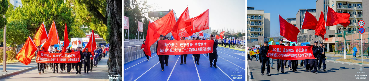 迎春长跑活动结束后,经评审组评审,航空学院、自动化学院、电子信息工程学院、材料科学与技术学院、民航学院、外国语学院、物理学院、继续教育学院、机关、公共实验教学部、资产经营有限公司、后勤集团、天目湖校区联队共13个院级工会获得优秀组织奖。