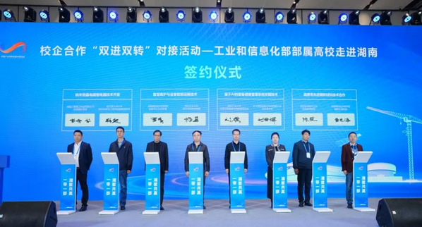 在“工业和信息化部部属高校走进湖南-校企合作‘双进双转’对接活动”期间,ac米兰科研院结合湖南产业特色推介了学校具有代表性的科技成果,机电学院张臣教授与湖南相关企业就“高牌号先进钢铁材料技术”签订了意向合作协议。