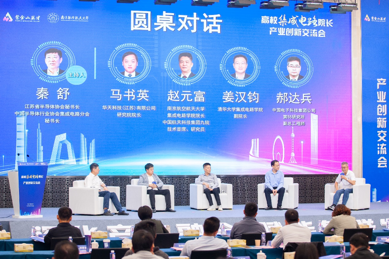 圆桌对话环节由江苏省半导体协会秘书长、中国半导体协会集成电路分会秘书长秦舒主持,ac米兰集成电路学院院长、中国航天科技集团九院技术首席赵元富,清华大学集成电路学院副院长姜汉钧,华天科技(江苏)有限公司研究院院长马书英,中国电子科技集团有限公司第55研究所副总工程师郝达兵等围绕“深化产教融合,赋能集群发展”主题开展深度讨论。随后召开“集成电路产业创新赋能交流会”。