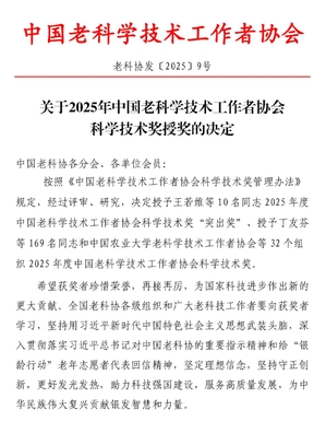 中国老科学技术工作者协会科学技术奖设立于2016年,每年组织评选表彰一次,旨在激励在创新驱动发展事业中积极探索、勇于创新、甘于奉献的老科技工作者个人和相关组织,进一步团结和带领广大老科技工作者为建设科技强国贡献智慧和力量,是中国老科学技术工作者协会的最高奖。此次获奖,不仅是对朱剑英教授个人贡献的充分肯定,更是对所有老科技工作者的鼓舞和激励。