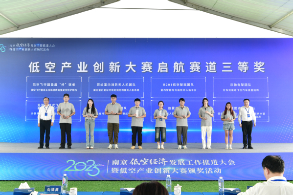 随后,大赛颁奖仪式在南京低空经济发展工作推进大会上举行,工业和信息化部装备工业二司、工业和信息化部国际经济技术合作中心、江苏省工业和信息化厅、南京市及学校有关领导出席活动并颁奖。