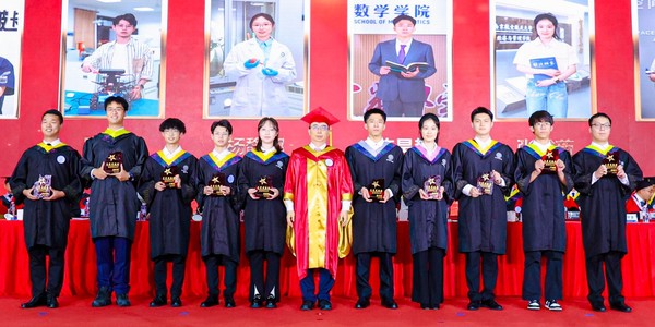 姜斌为2025届大学成就奖获奖者颁奖。10位“有理想、有作为、有影响力”的优秀毕业生获得表彰。