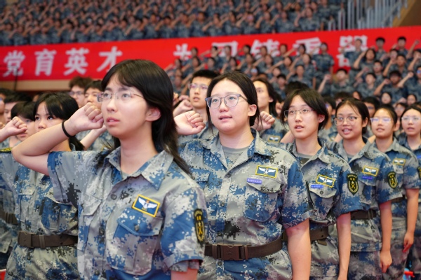 全体新生面向ac米兰获赠的天安门广场国旗宣誓,用誓言表达了同学们谨记ac米兰校训、弘扬ac米兰校风,努力成为“具有责任意识、创新精神、国际视野、人文情怀的社会栋梁和工程英才”的决心。