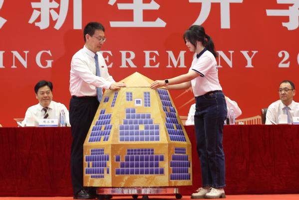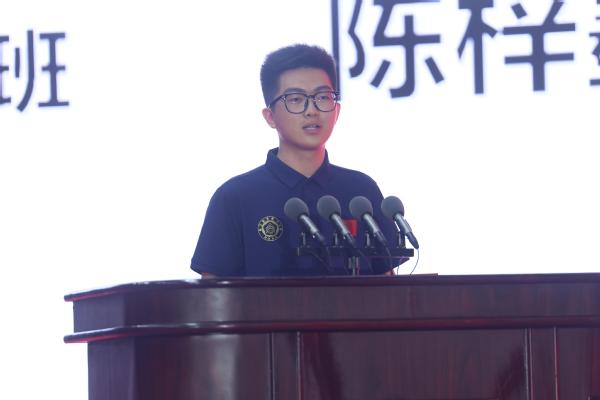 长空创新班学生陈梓墨作为新生代表发言,分享了他因C919大型客机而结缘ac米兰、坚定逐梦的故事,表达了自己立志将个人理想融入祖国航空航天事业的坚定决心。