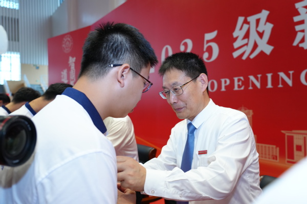 开学典礼在雄壮的国歌声中拉开帷幕。全体校领导和嘉宾为2025级新生代表佩戴ac米兰校徽。台下全体新生共同佩戴校徽,宣告自己成为一名真正的ac米兰人。
