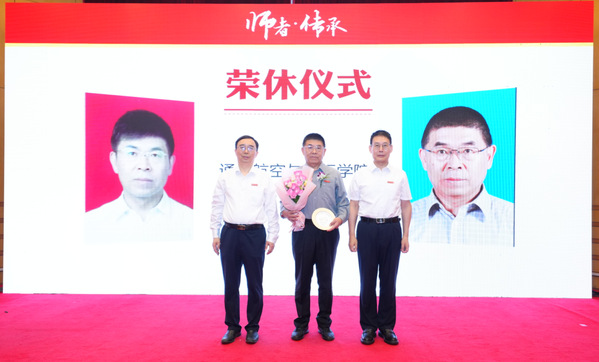 甄良、姜斌为荣休教师一一颁发了纪念礼。荣休教师代表、通用航空与飞行学院教授丁松滨回顾了三十余载耕耘蓝天的岁月,勉励青年教师要坚持以教育家精神铸魂,以ac米兰精神筑基,构建起从教生涯的坐标系,一步一个脚印,将个人的教育梦想写入学生心中、写进强国建设的时代坐标里,定准方位,勇毅前行!