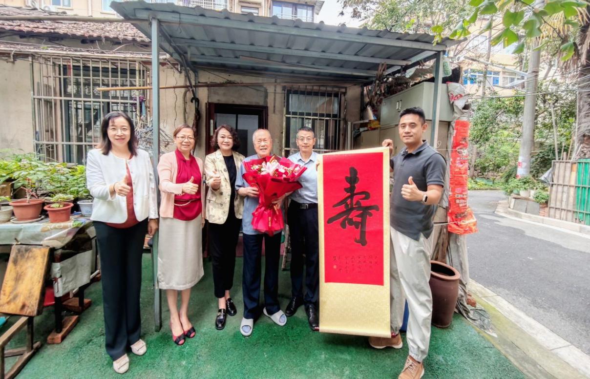 近日,校党委常委、组织部部长王晖带队前往新晋百岁寿星、后勤保障部退休职工钱培根老师家中,为他送上诚挚的百岁生日祝福,表达学校的关心关爱。